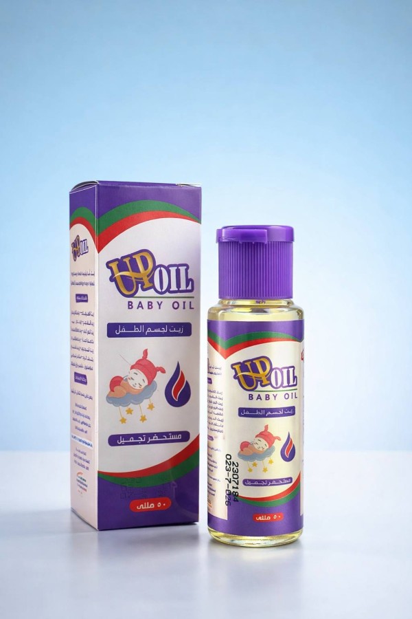 A baby body oil containing avocado oil, olive oil, chamomile oil, coconut oil, sweet almond oil, castor oil, jojoba oil, and vitamin E oil — an advanced formula for caring for your baby’s softness and comfort.